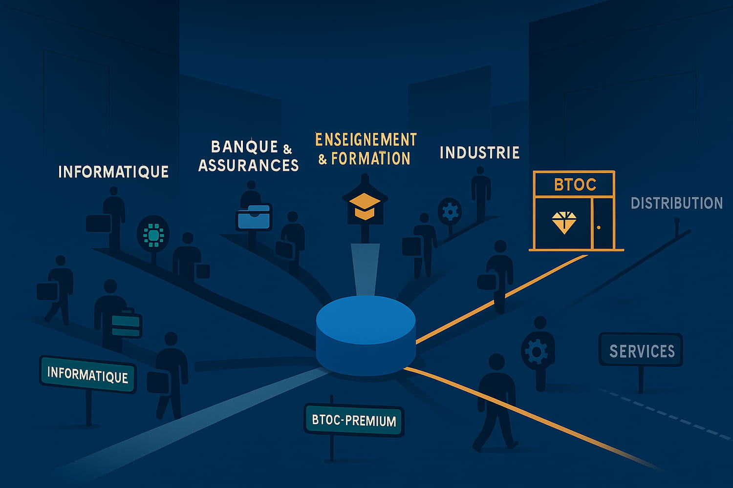 Juste derrière le premier bataillon des top 10, apparaissent Hubspot (11e), Qonto (12e), BFM (13e), Salesforce (14e) et SAP Logiciels (15e), pour nous rappeler la spécificité de réseau social professionnel de LinkedIn. Cette dernière se fait sentir aussi dans le top 5 secteurs des annonceurs présents dont seulement une catégorie, celle des services, se trouve bien représentée chez les autres réseaux sociaux mesurés. Et même dans ce cas, ce ne sont pas les mêmes segments. Même le secteur de la distribution, souvent très fortement représenté chez tous les médias, est ici aux abonnés absents pour laisser la place à l'informatique, banque & assurances, enseignement & formation et industrie. Parmi les annonceurs présents uniquement sur LinkedIn sur les cinq réseaux sociaux mesurés, on peut citer Workday, Figma, Yousign et Zendesk.