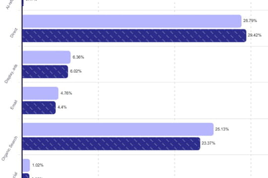 Le gain de popularité significatif des robots conversationnels et des fonctionnalités IA des moteurs de recherche auprès des consommateurs du monde entier se fait de plus en plus sentir dans les sources de trafic des sites web des marques. Dernières données en date révélées par Contentsquare ce 12 février dans son Digital Experience Benchmark : non seulement la part des IA dans le trafic de 6 500 sites a été multipliée quasiment par 6 en une année mais l’activité issue du référencement naturel recule de 9% sur la même période. "L’IA ne représente encore qu’une faible part du trafic, mais son impact redessine déjà le haut du funnel. La recherche organique, longtemps une source fiable, perd des clics au profit de réponses obtenues hors des sites web. De plus en plus, le parcours débute avant même la visite, transformant à la fois le profil des visiteurs et leur niveau d’information", analysent les auteurs du rapport.