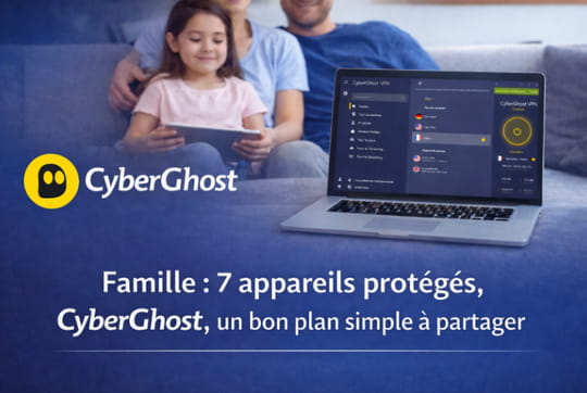 Famille : 7 appareils protégés, CyberGhost, un bon plan simple à partager