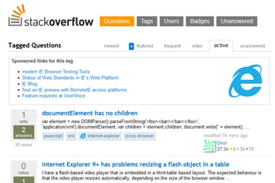 Le support d'Internet Explorer bascule sur Stack Overflow