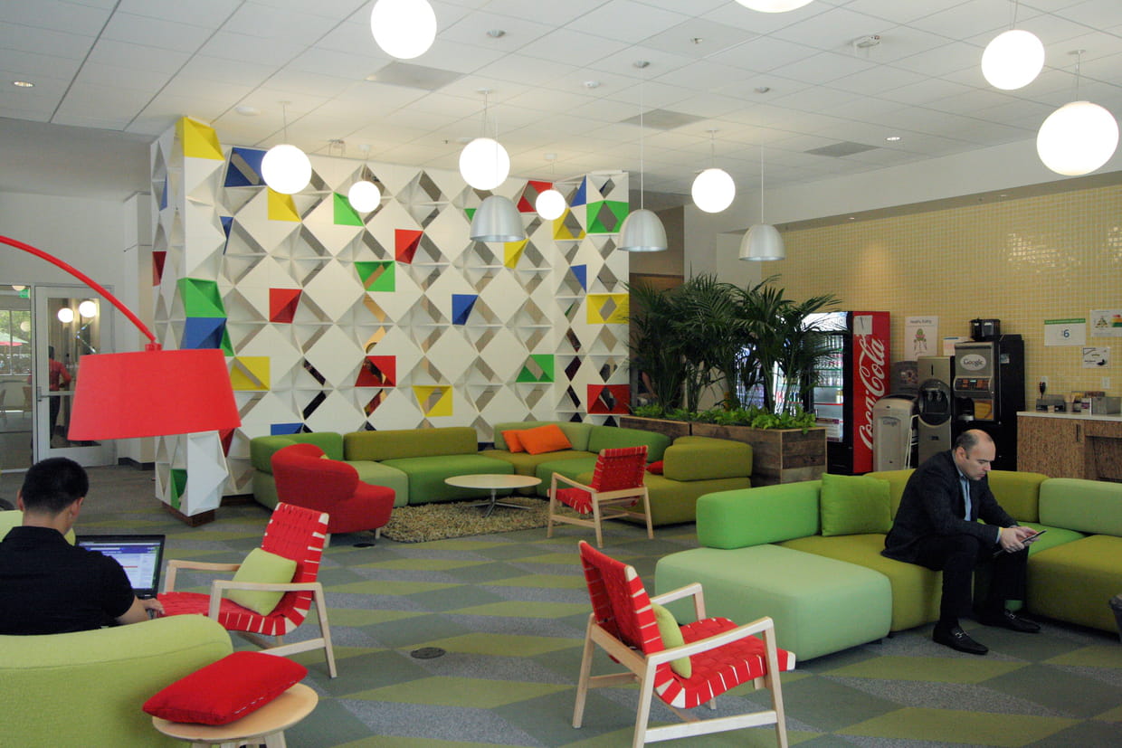 Le Googleplex dispose également de nombreux espaces détente comme celui-ci où les salariés peuvent s'installer confortablement lors de réunions informelles.