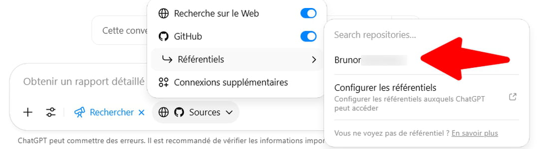 ChatGPT supporte la recherche avancée dans Gmail, Calendar, Drive et GitHub. Nous commençons par tester GitHub avec ChatGPT Plus. Lancé le 8 mai 2025, le connecteur GitHub offre un accès direct aux dépôts présents sur le service d'hébergement et de gestion de développement de logiciels. Il permet d'explorer et de questionner directement sur ChatGPT des contenus de code. Vous pouvez lui demander ce qu'il y a dans un dépôt, ou encore créer des nouveaux éléments. L'outil peut notamment proposer des étapes pas à pas pour avancer dans votre projet.