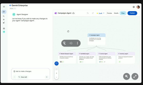 Au-delà de la création d'agents personnalisés, Gemini Enterprise embarque une "task force" d'agents pré-configurés développés par Google et plusieurs partenaires. Ils permettent de couvrir un grand nombre de cas d'usage interne à l'entreprise, y compris dans la génération de nouveaux contenus visuels. Pour garantir un déploiement sécurisé Google intègre un module de gouvernance centralisé permettant de surveiller l'ensemble des agents déployés, d'auditer leurs actions et de contrôler leur sécurité. Chaque agent ne pourra utiliser que les données que l'utilisateur est autorisé à voir. De même, il ne pourra effectuer que les actions permises.