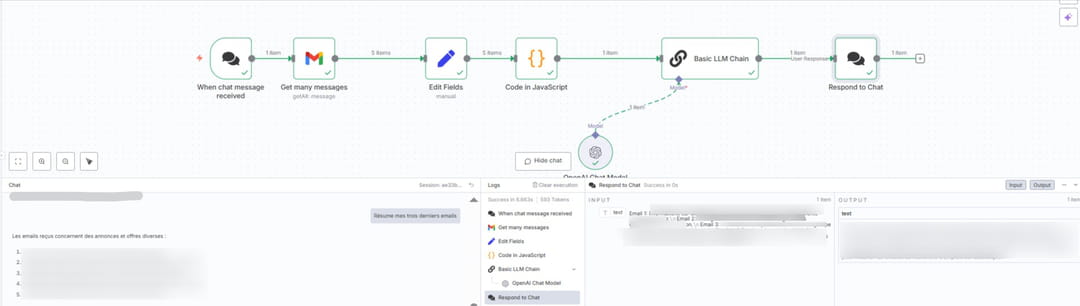 chatInput: `Voici les 3 derniers emails reçus. Résume-les de manière claire et concise :\n\n${emails}`