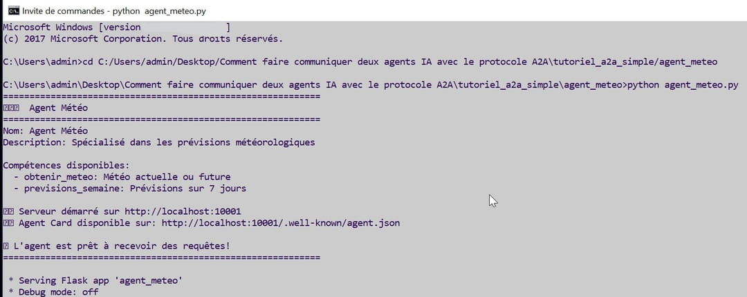 cd chemin/vers/tutoriel_a2a_simple/agent_meteo python agent_meteo.py