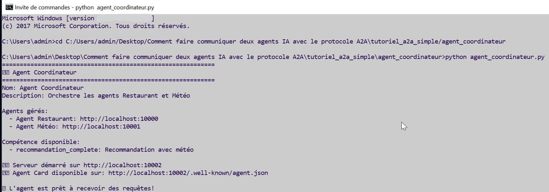 cd chemin/vers/tutoriel_a2a_simple/agent_coordinateur python agent_coordinateur.py