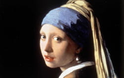 Prompt : Apple AirPods Max headphones in silver/white color covering both ears, with the distinctive mesh ear cups and metal headband arch visible over the top of the turban. The headband should curve naturally over her head, partially hidden by the blue and yellow turban fabric. The headphones should be painted in Johannes Vermeer's oil painting technique with soft, diffused lighting from the left side. Match the original painting's color palette - use cool silvery-grays with subtle yellow highlights where light hits the metal. Maintain the smooth, luminous quality and soft edges characteristic of Dutch Golden Age painting. The ear cups should have the same pearl-like sheen as the famous earring. Classical 17th century oil painting style, not modern photography. Soft shadows, gentle color transitions, masterful chiaroscuro lighting matching Vermeer's technique.