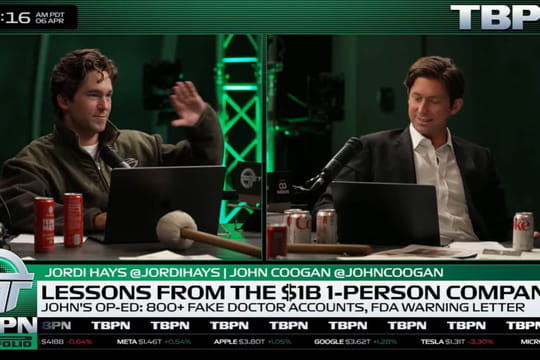 Peu connu en France, TBPN, pour Technology Business Programming Network, est un media de niche extrêmement suivi dans la Silicon Valley et par les professionnels de la tech du monde entier. La formule est originale et bien rodée : chaque jour de semaine, les deux présentateurs décryptent l’actualité technologique au cours d’une émission de plus de trois heures diffusée en direct sur les réseaux sociaux, sur un plateau dont le code de couleurs vert rappelle l’univers de Matrix, où des bandeaux défilant alertent sur les cours de bourses des principales valeurs du numérique, les levées de fonds et fusions dans le monde de la tech.