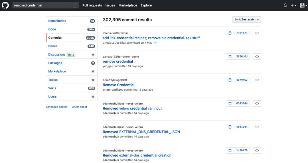Si vous effectuez une recherche sur GitHub pour le message commit "removed aws key", vous trouverez des milliers de résultats. Et ce, uniquement dans les dépôts publics.