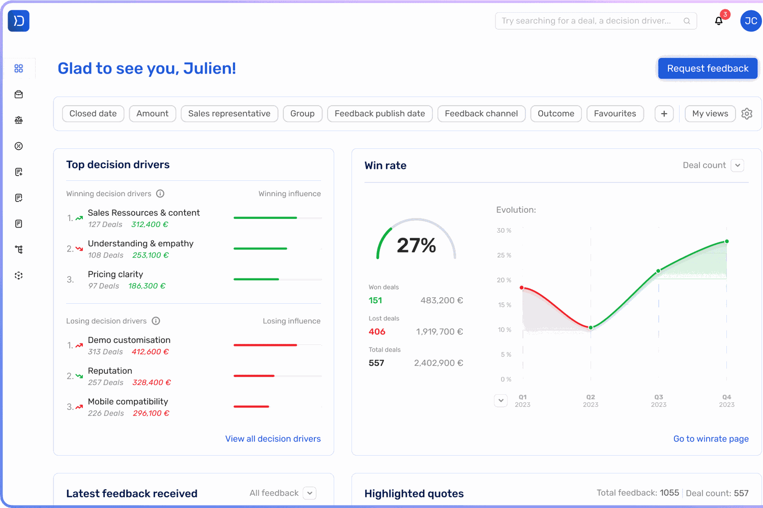 Selon une étude Gartner, l'analyse de la satisfaction client, se résume souvent aux champs du CRM, erronés dans 90% des cas. C'est pour répondre à cette problématique que Julien Cohen-Roussey, Anne-Sophie Clément et David Guillermain ont créé Diffly en 2023, autour du concept de "win-loss analysis".