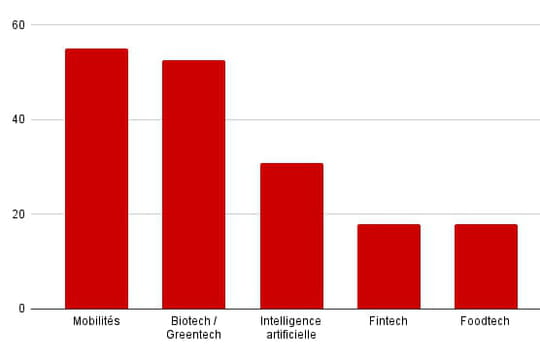 Côté secteur, les mobilités arrivent en tête avec pourtant une seule levée de fonds observée, celle réalisée par Upway, vendeur de vélos électriques reconditionnés qui a rassemblé 55 millions d'euros. La biotech/greentech (52,6 millions d'euros ; 6 opérations) et l'intelligence artificielle (30,8 millions d'euros ; 3 opérations) complètent le podium. Derrière, la fintech et la foodtech ont toutes les deux levé 18 millions d'euros.